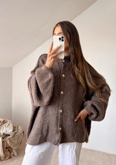 LANGE OVERSIZE STRICKJACKE MAIRA - Dunkles Braun