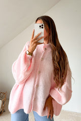 Lässige Oversize Strickjacke mit goldenen Knöpfen.
