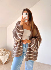 STREIFEN OVERSIZE STRICKJACKE MELLO - braun