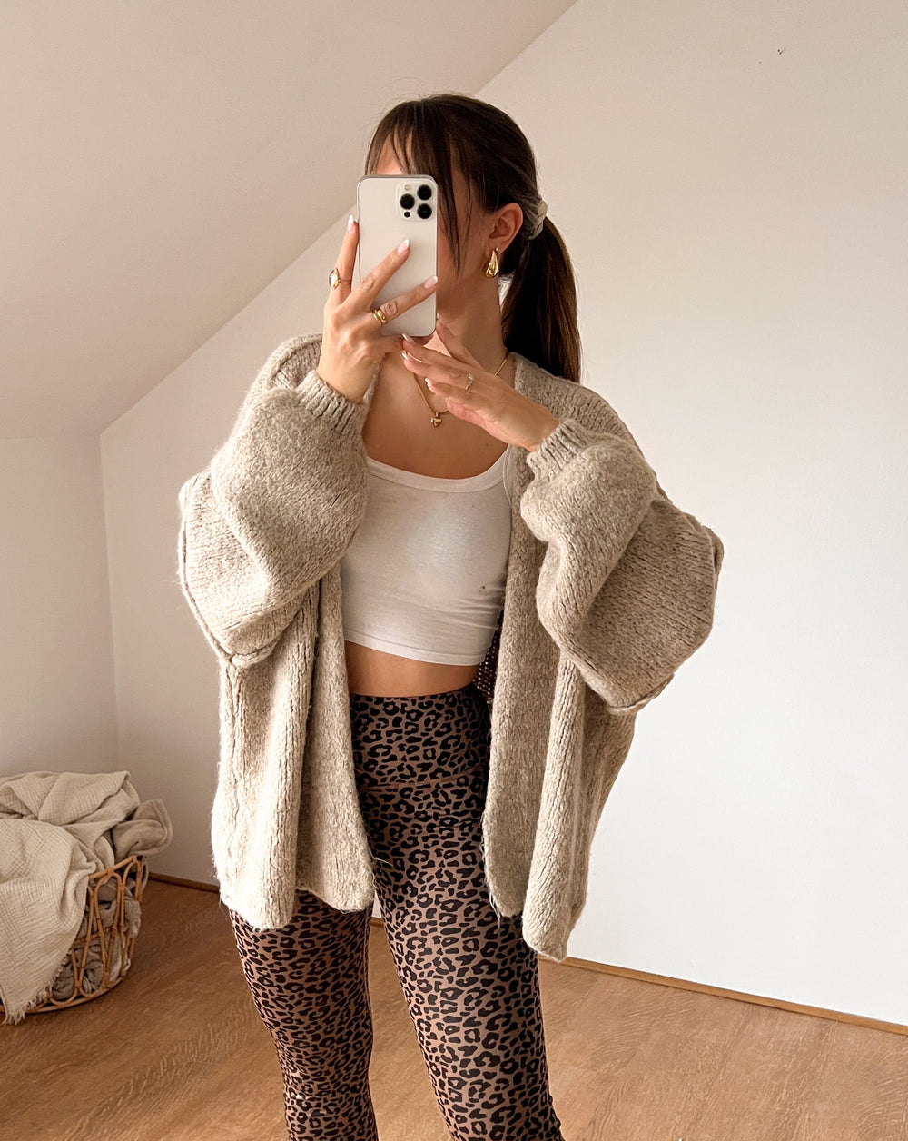 LANGE OVERSIZE STRICKJACKE MAIRA - beige
