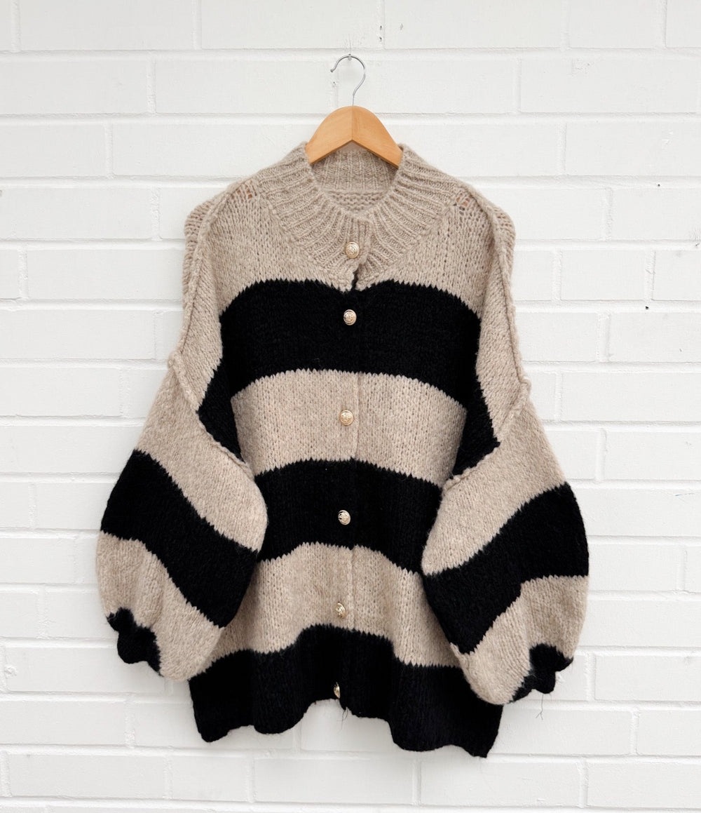 STREIFEN STRICKJACKE MAIRA - taupe schwarz