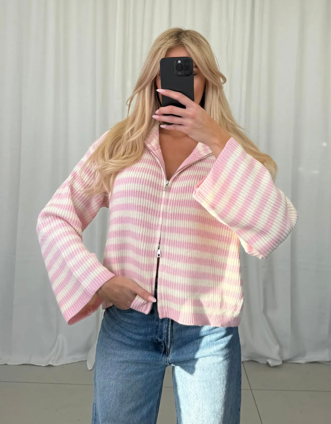 STREIFEN STRICKJACKE mit Reißverschluss - versch. Farben