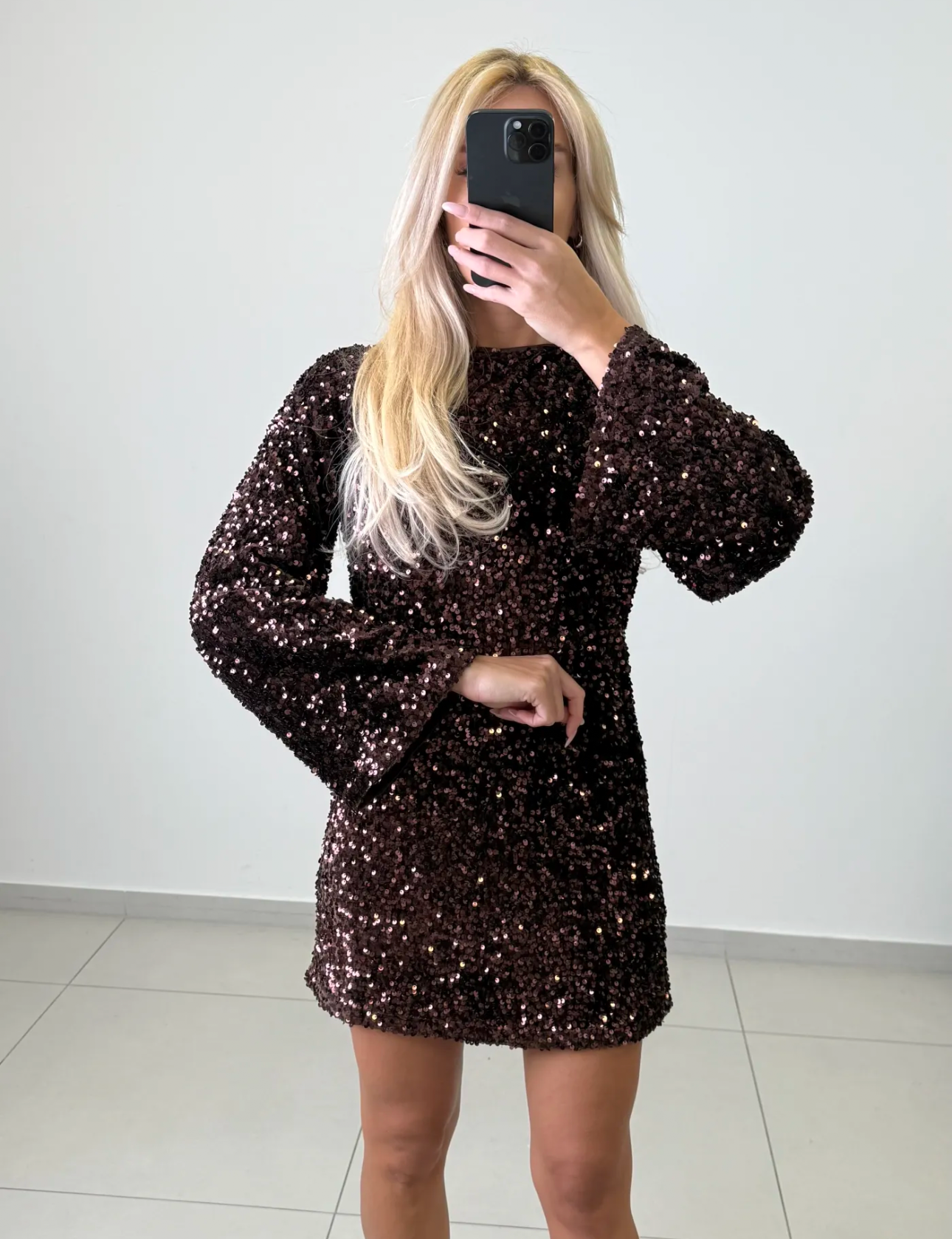 PAILLETTEN GLITZER KLEID - braun