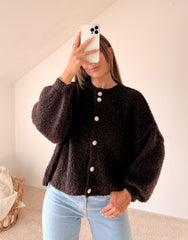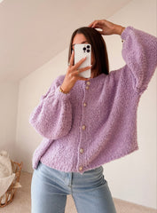 KURZE BOUCLE STRICKJACKE - Flieder
