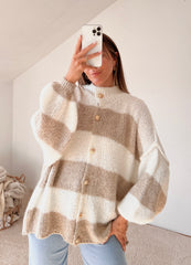 STREIFEN STRICKJACKE MAIRA - taupe schwarz