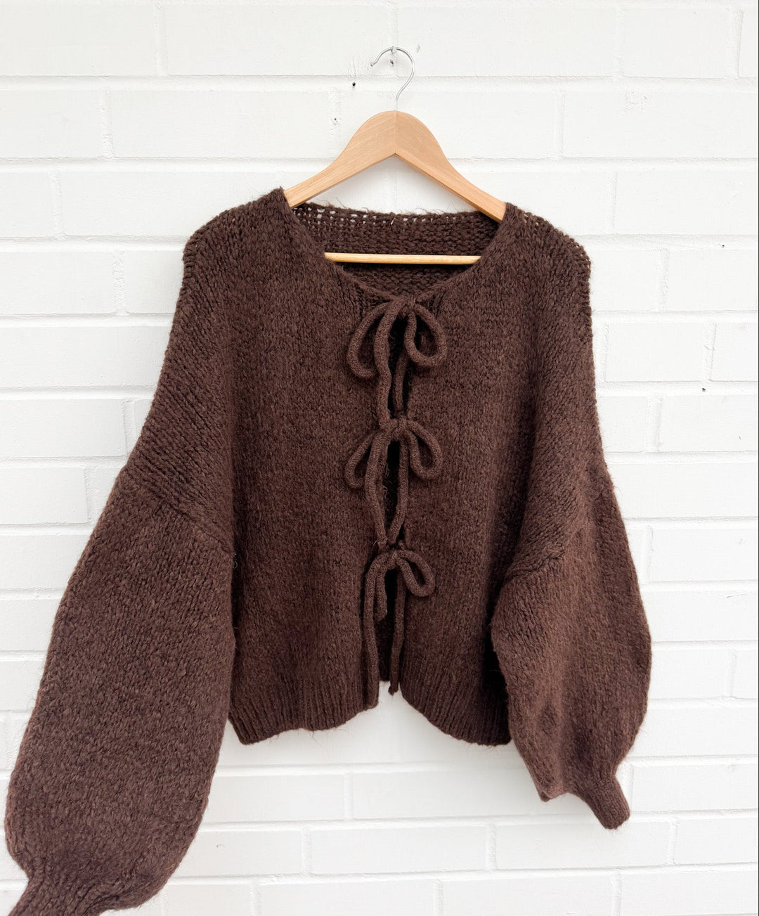 SCHLEIFEN STRICKJACKE - dunkelbraun