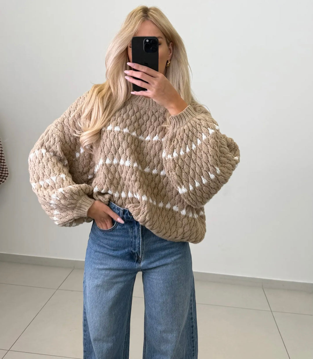 STREIFEN KNOTEN STRICKPULLOVER - braun