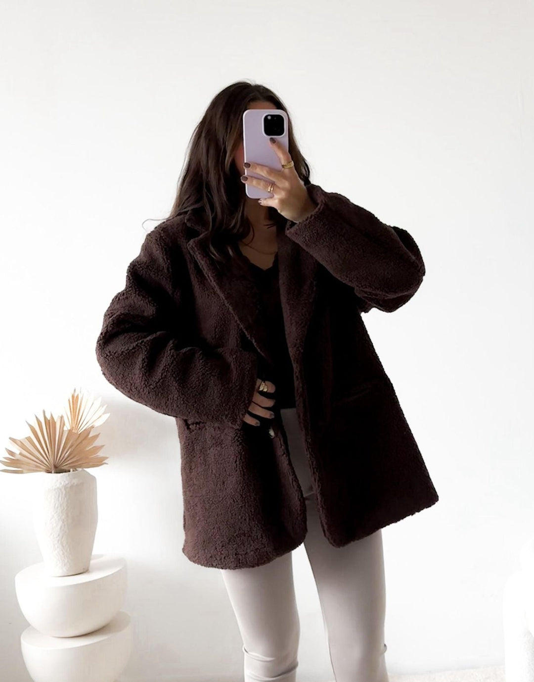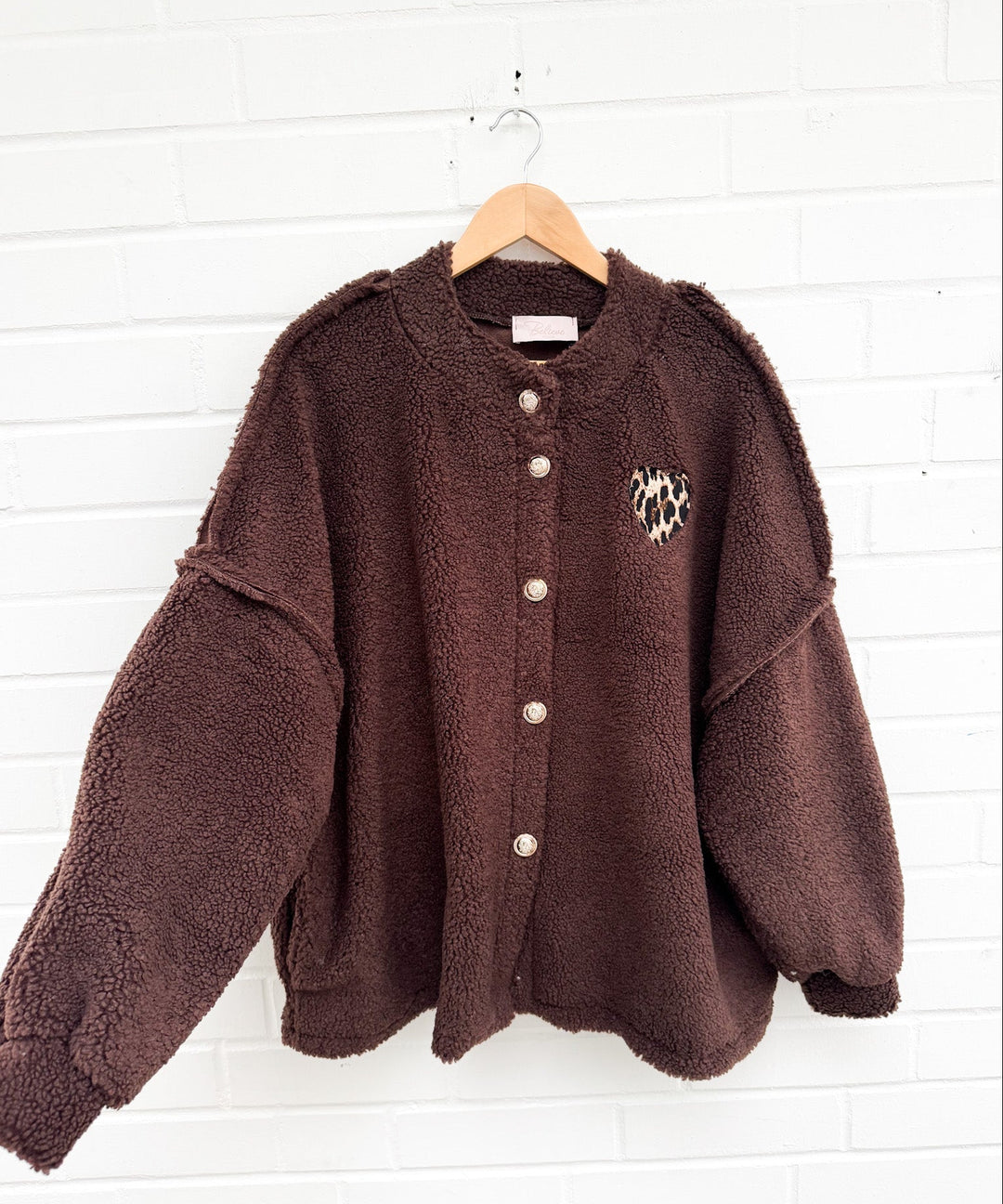 LOCKERE TEDDY JACKE mt goldenen Knöpfen - dunkelbraun