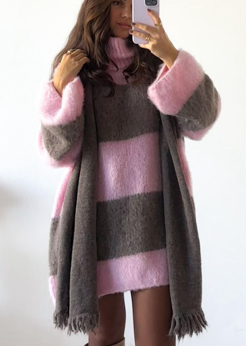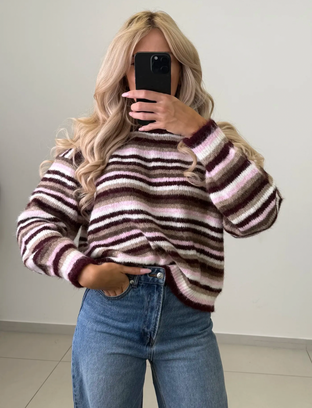 OVERSIZE STREIFEN STRICKPULLOVER - Rosa braun