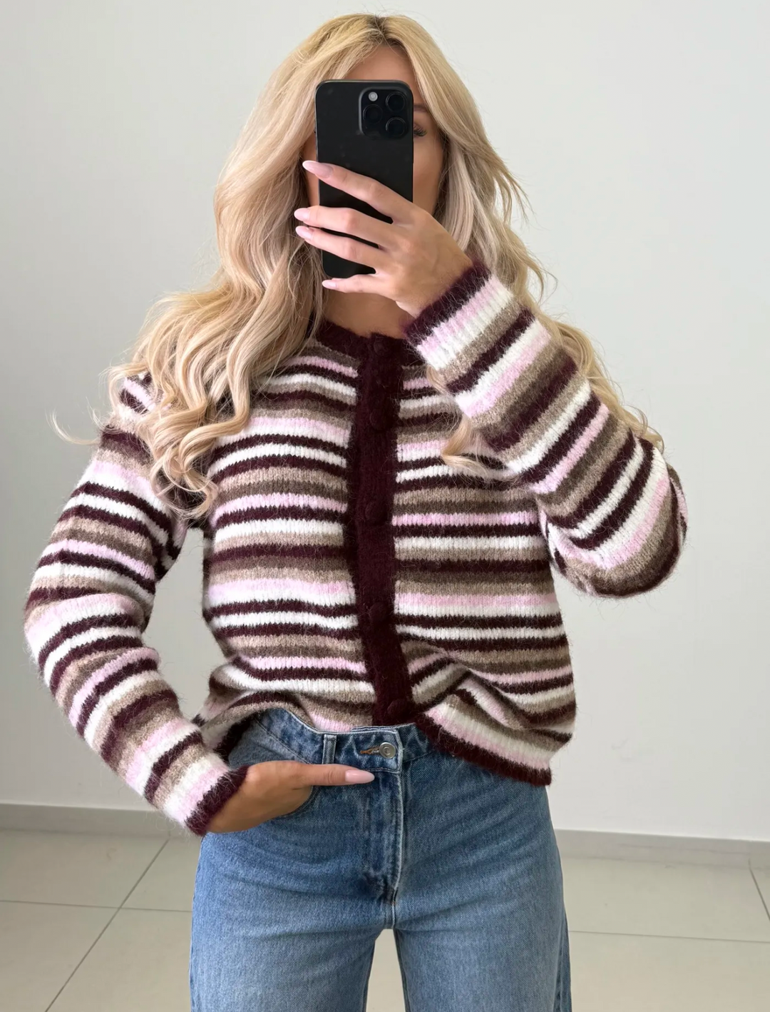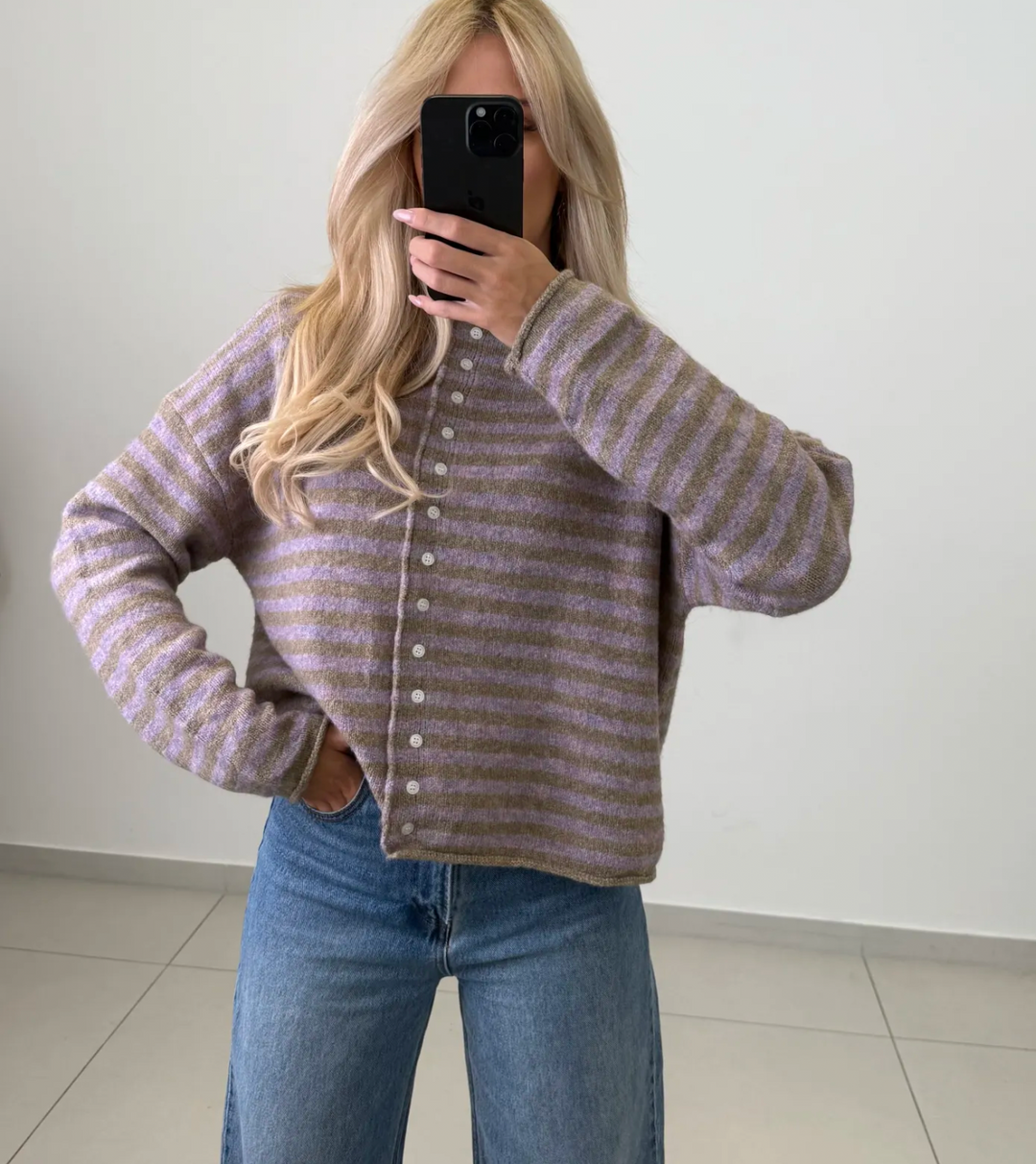 STREIFEN STRICKJACKE mit Mini Knöpfen - flieder
