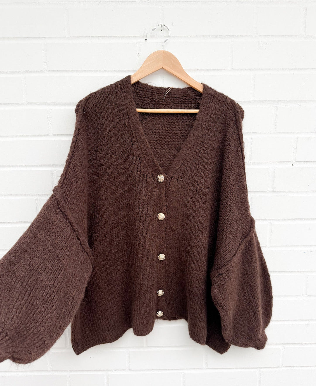 KURZE STRICKJACKE MAIRA - dunkelbraun