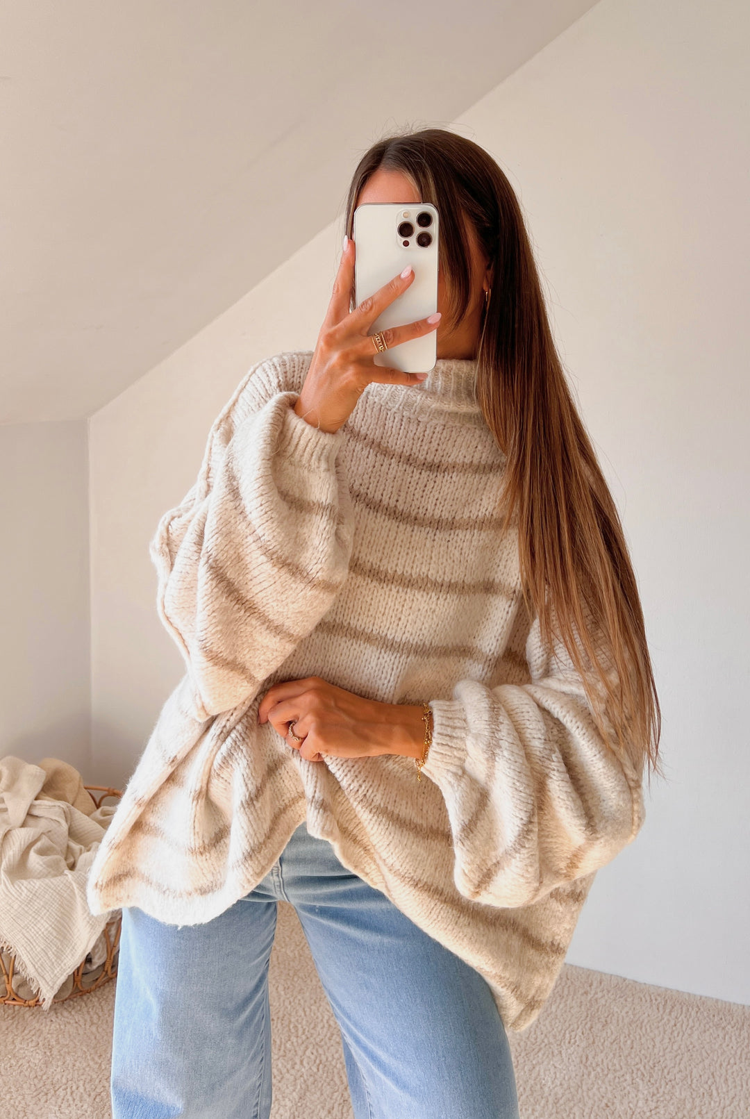 OVERSIZE STREIFEN STRICKPULLOVER - beige