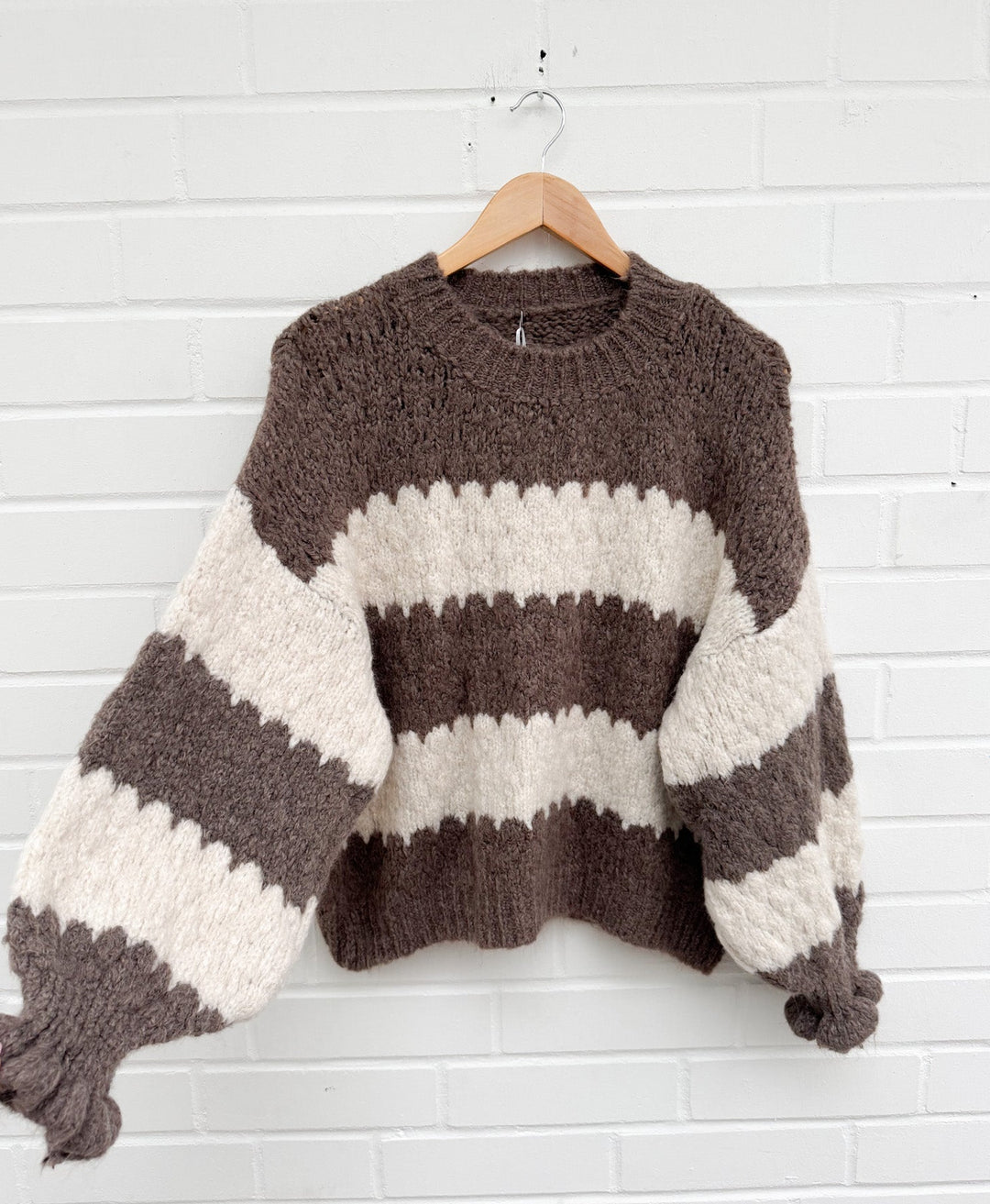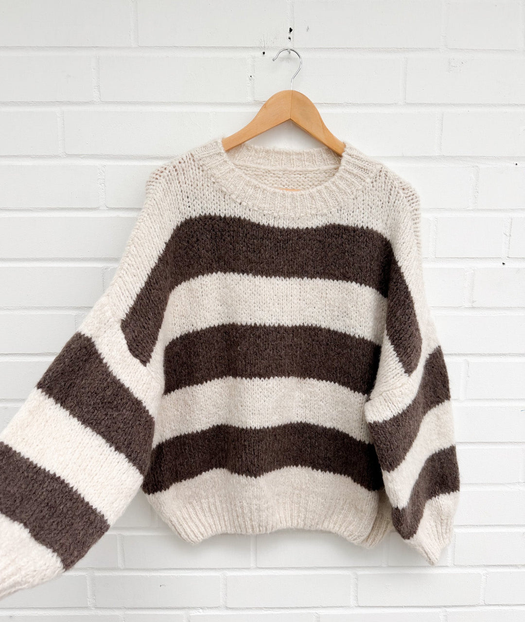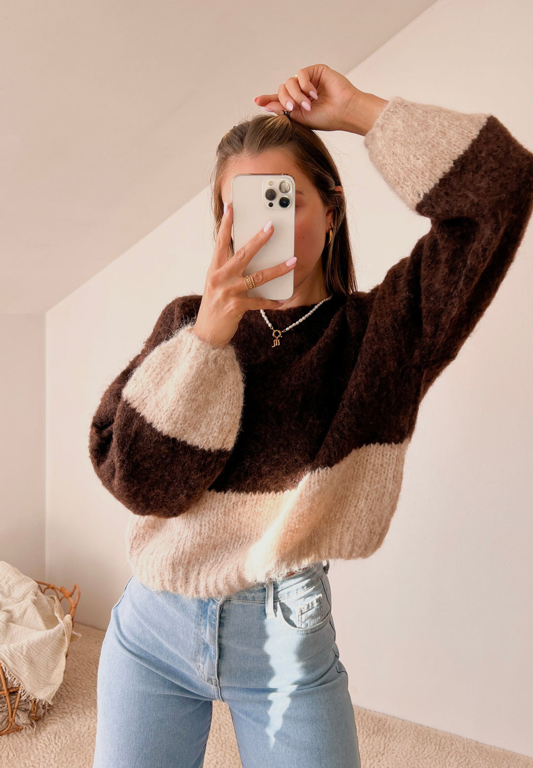 COZY STRIPE STRICKPULLOVER - Schwarz braun