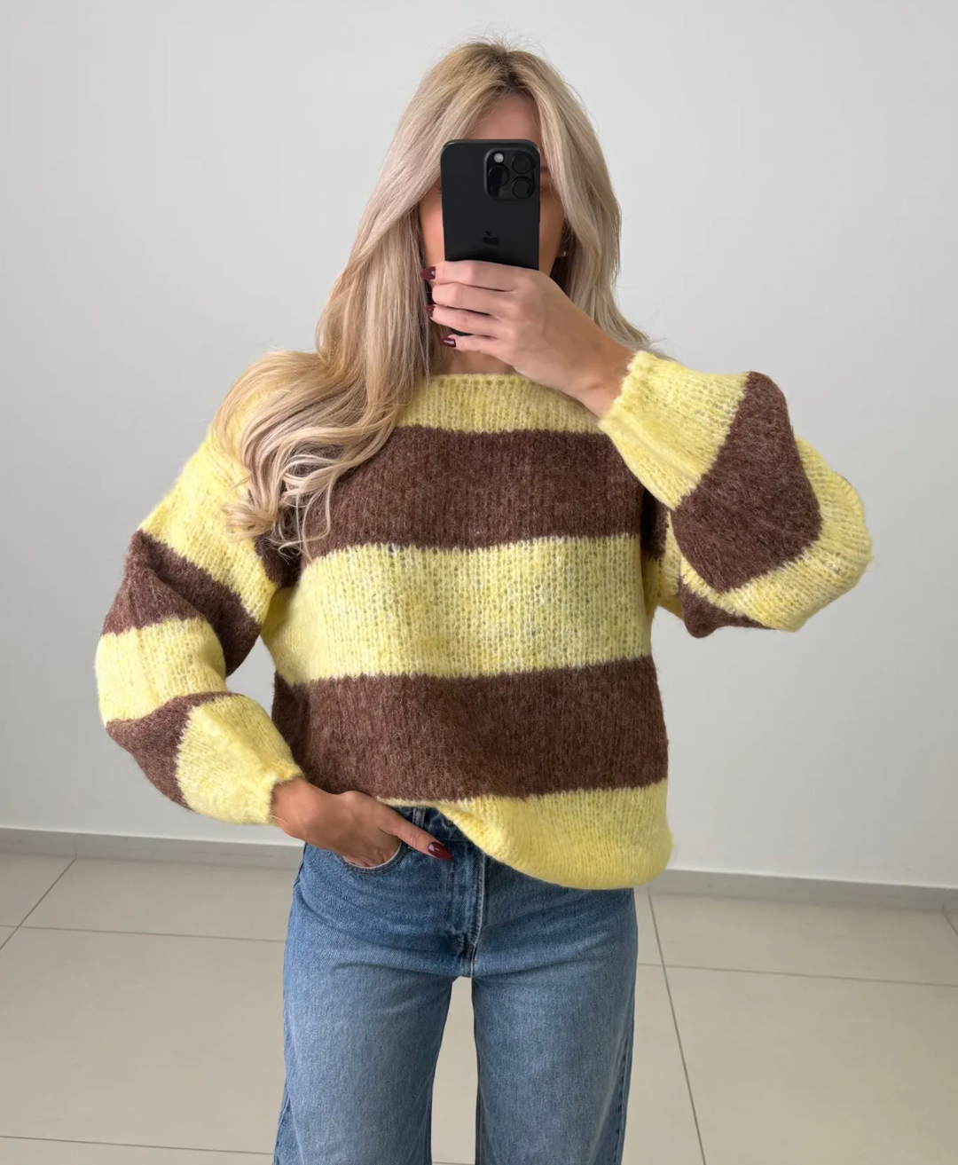 OVERSIZE STREIFEN STRICKPULLOVER - Gelb braun