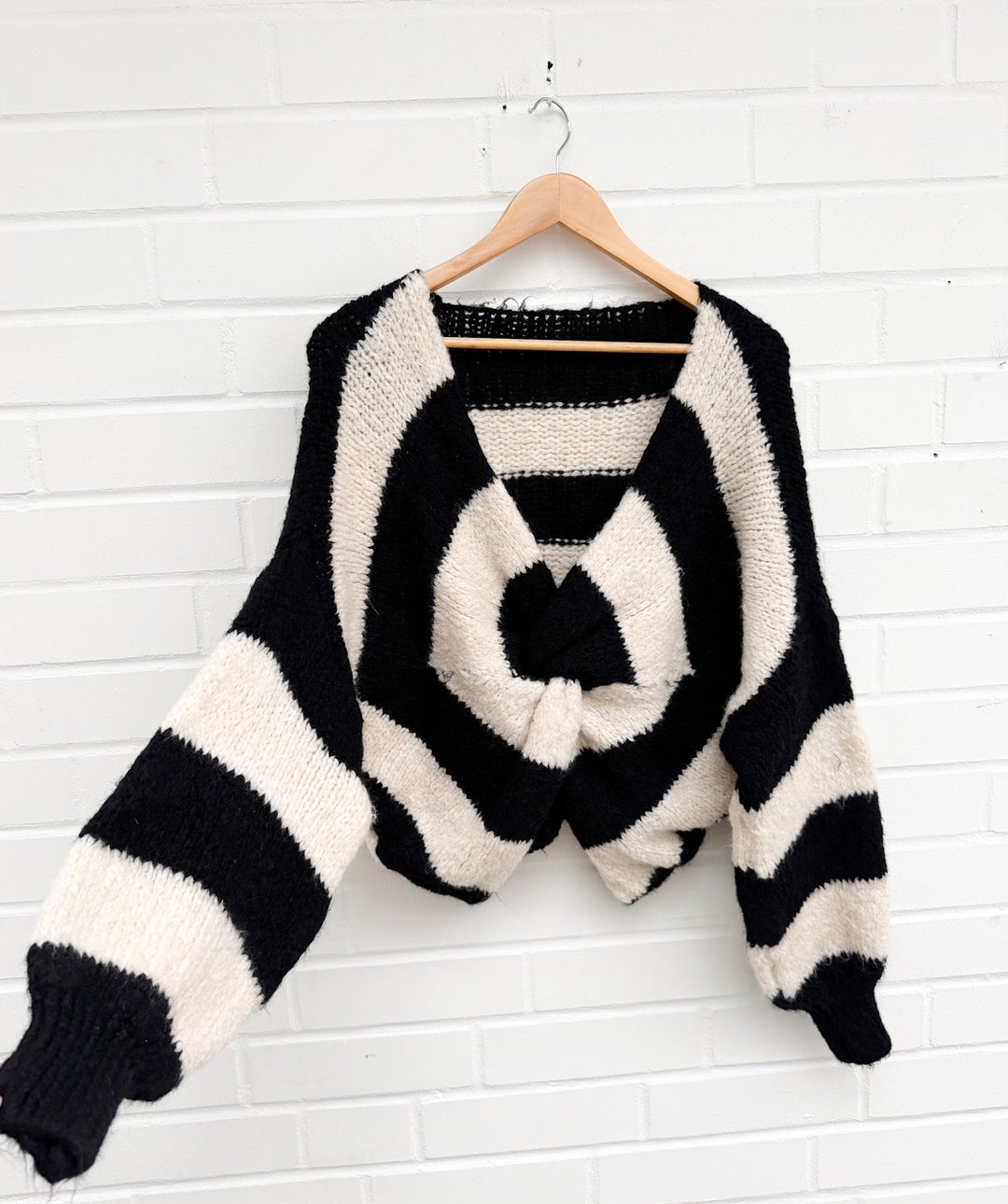 STREIFEN KNOTEN STRICKPULLOVER - schwarz creme