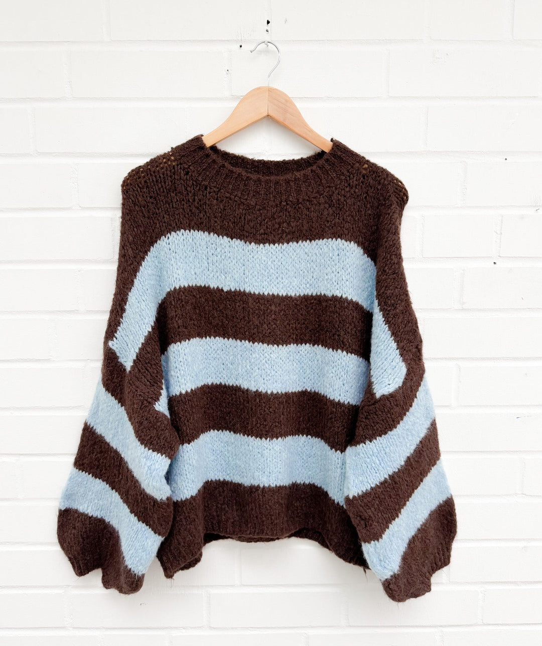 OVERSIZE STREIFEN STRICKPULLOVER - Hellblau braun