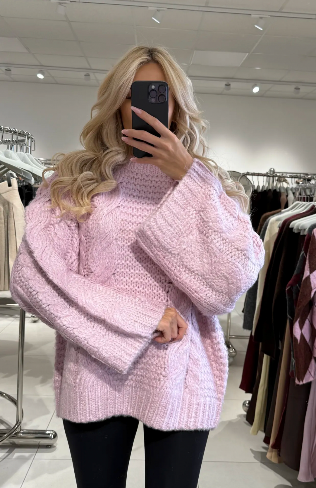 OVERSIZE ZOPFMUSTER PULLOVER - rosa