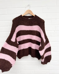 OVERSIZE STREIFEN STRICKPULLOVER - Hellblau braun