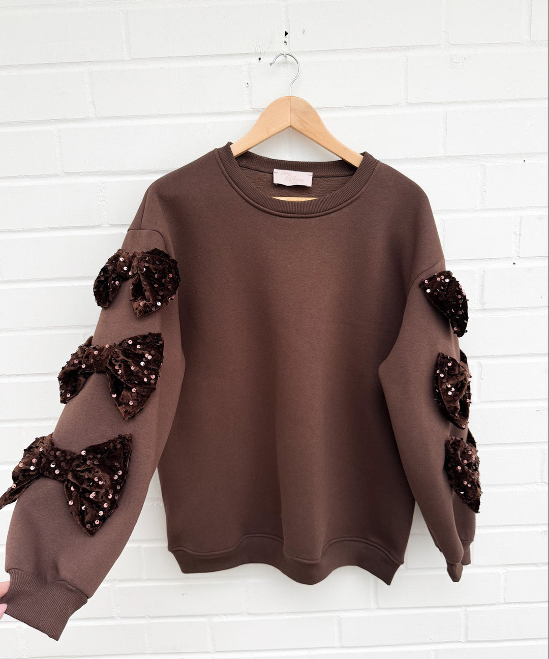 SWEATSHIRT MIT PAILLETTEN SCHLEIFEN - braun