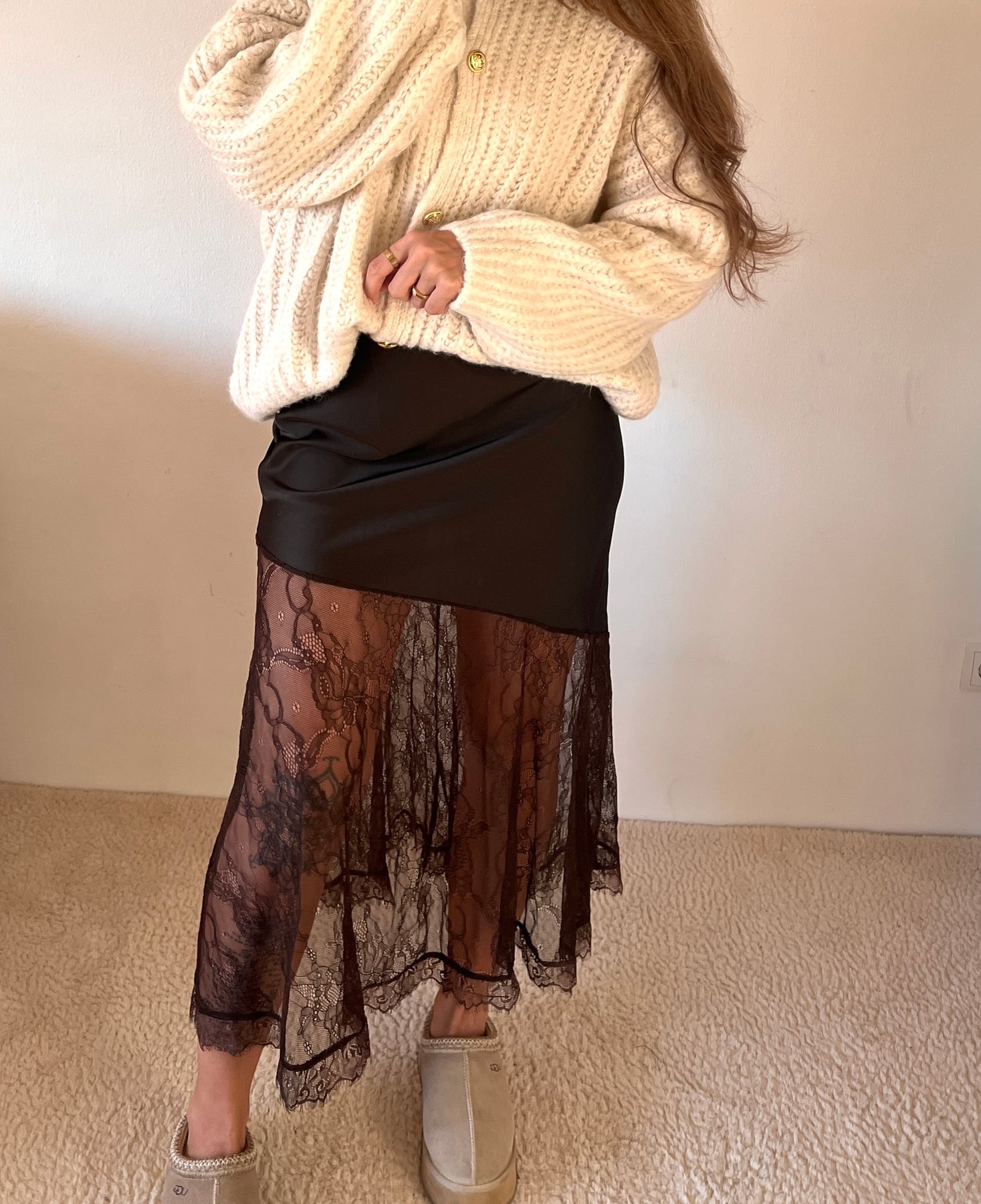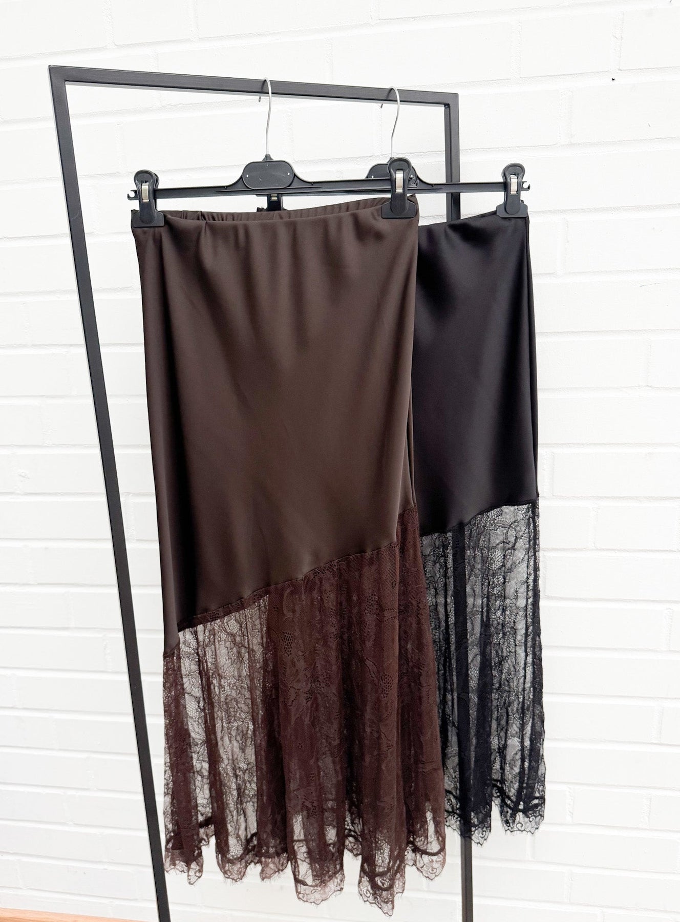 MIDI SATINOPTIK ROCK mit Spitze - versch. Farben
