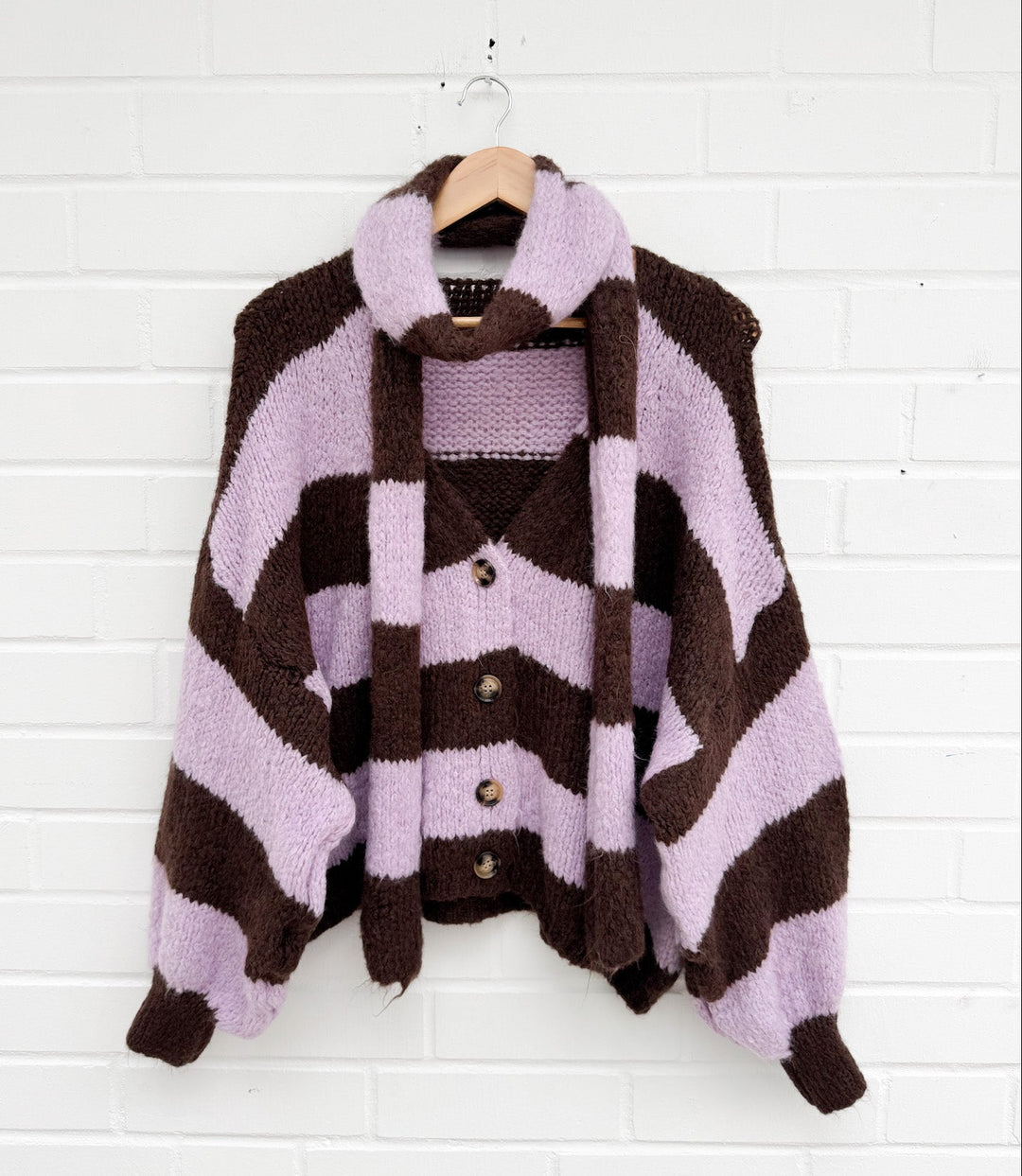 STREIFEN STRICKJACKE mit Schal - Flieder