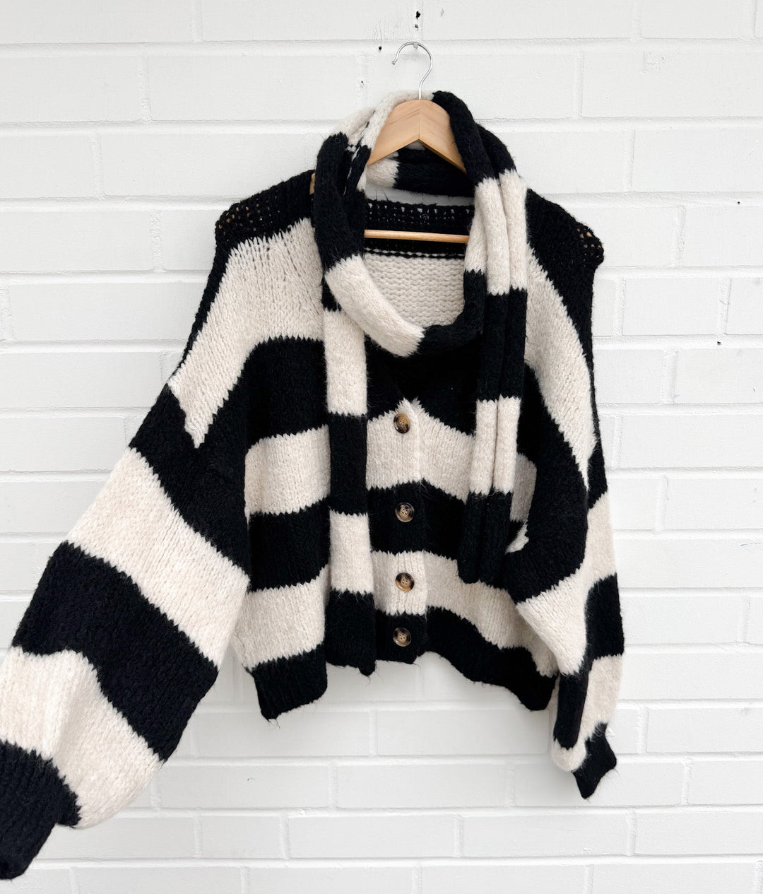 STREIFEN STRICKJACKE mit Schal - schwarz
