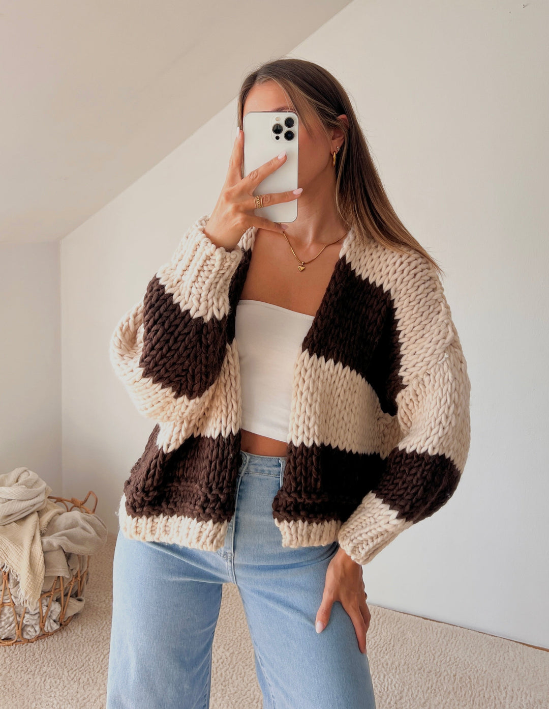 STREIFEN STRICKJACKE MAIRA - beige braun