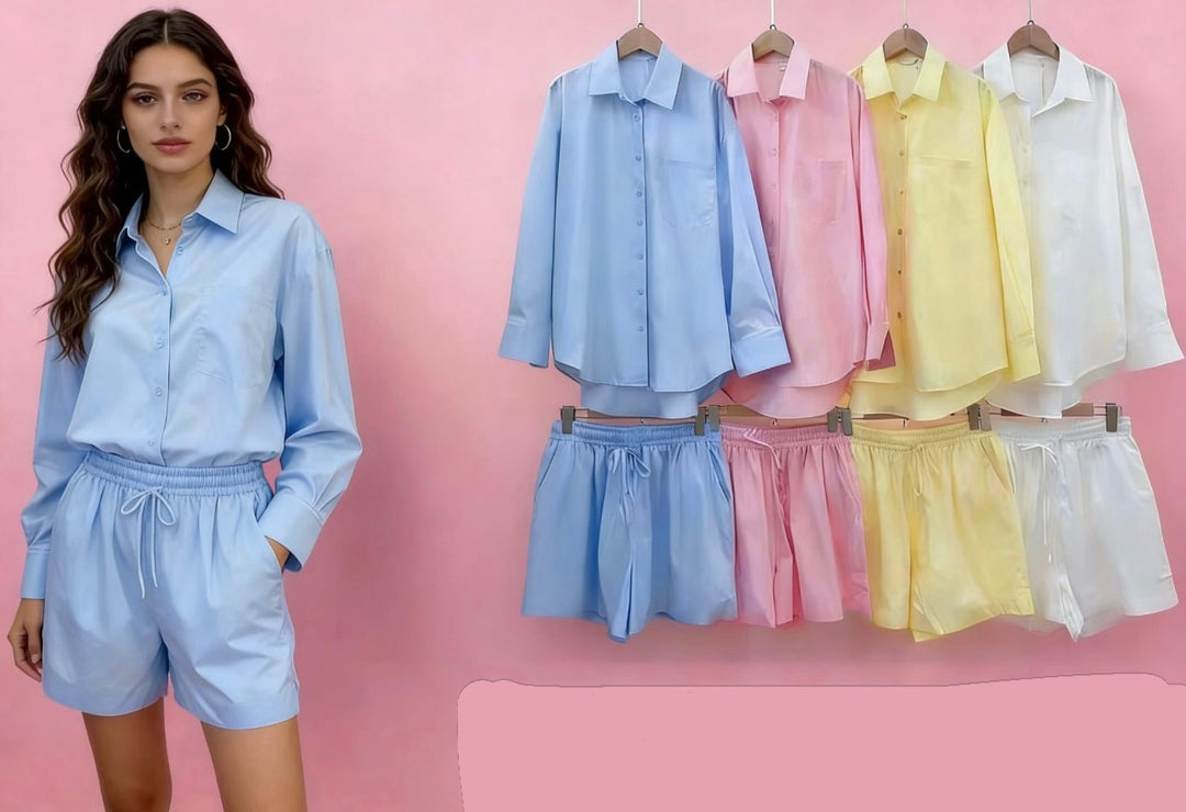 MUSSELIN BLUSE & SHORTS- versch. Farben