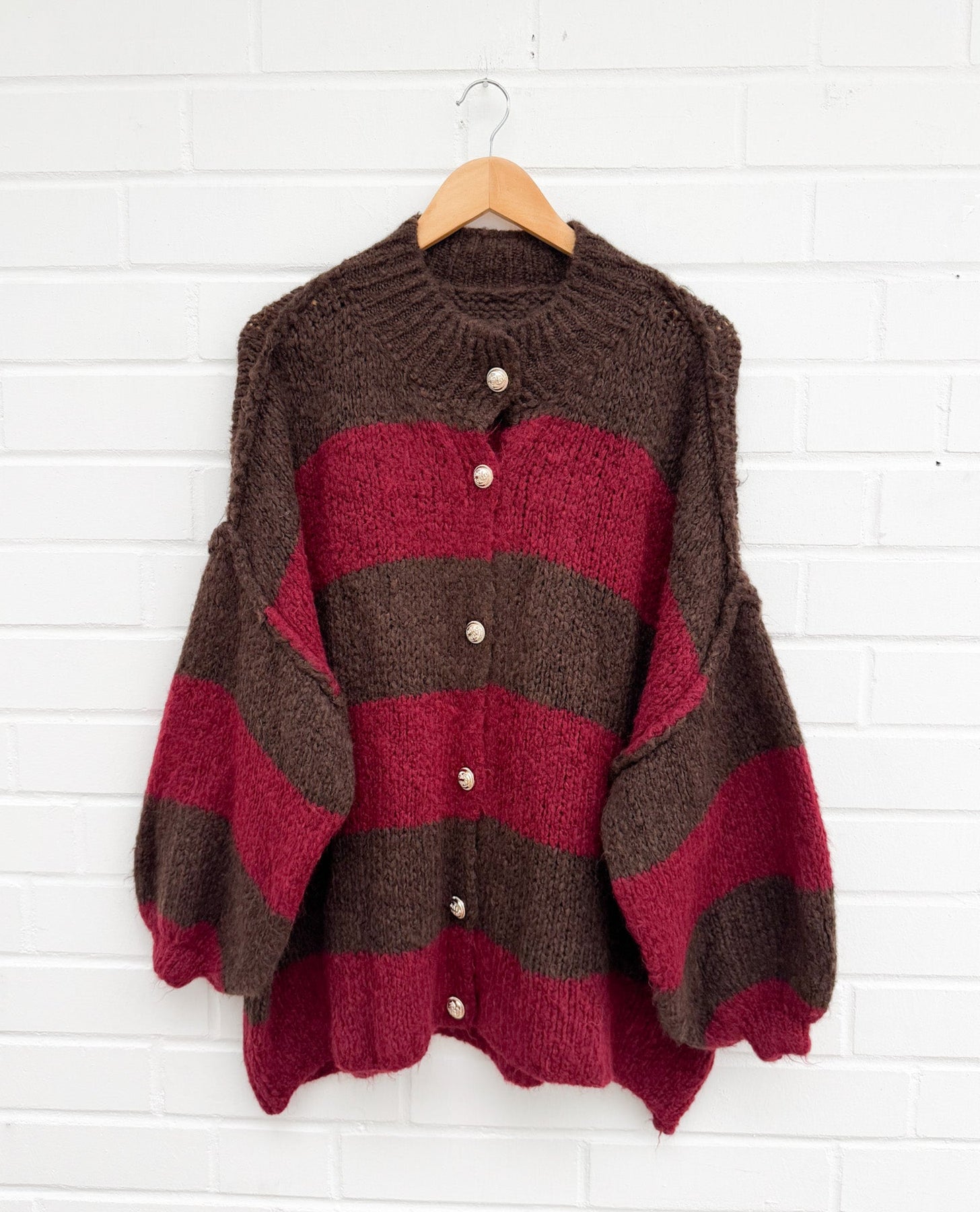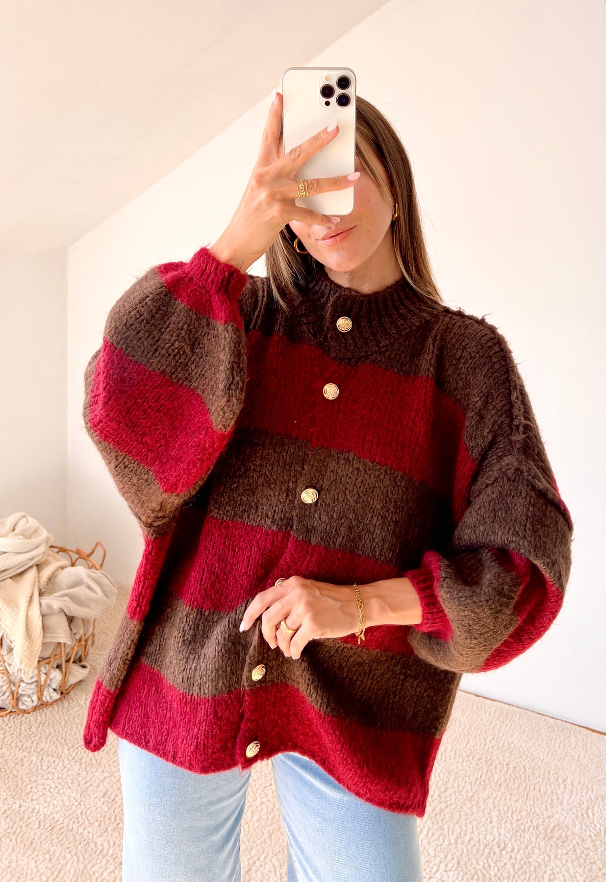 STREIFEN STRICKJACKE MAIRA - bordeaux Braun
