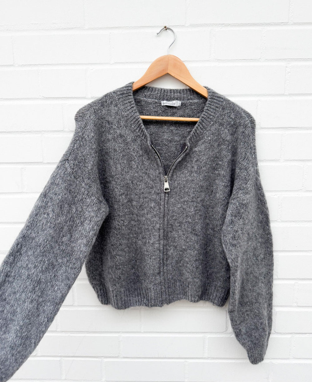 BOUCLE SCHLEIFEN STRICKJACKE - taupe