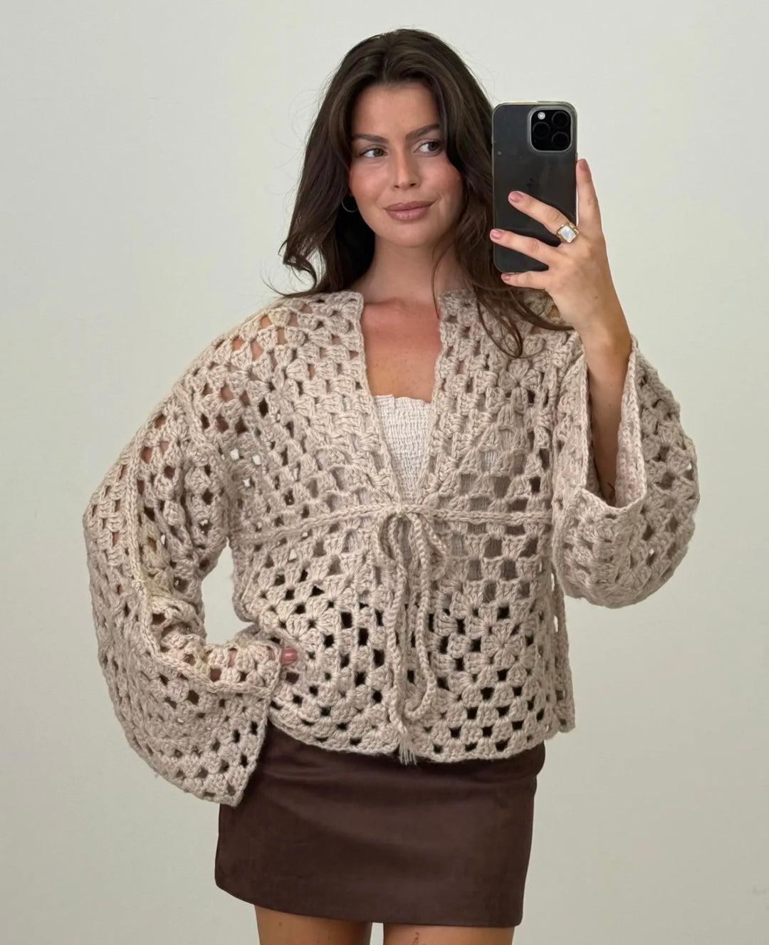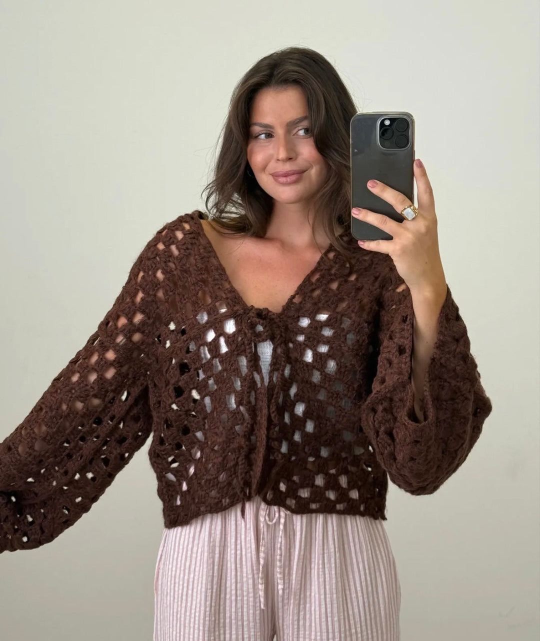 HANDMADE CARDIGAN BLOSSOM - braun rosa