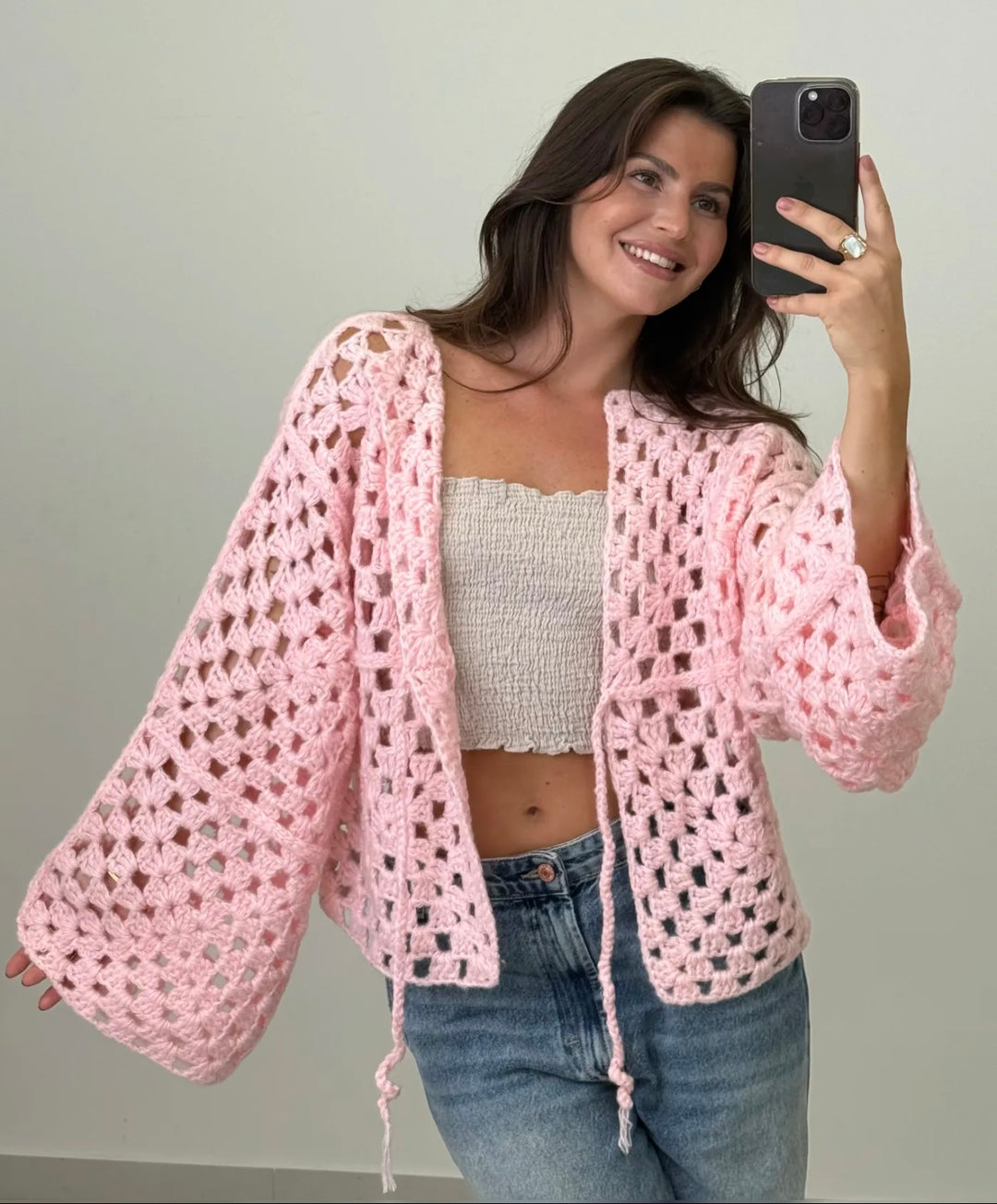 HANDMADE CARDIGAN BLOSSOM - rosa rot