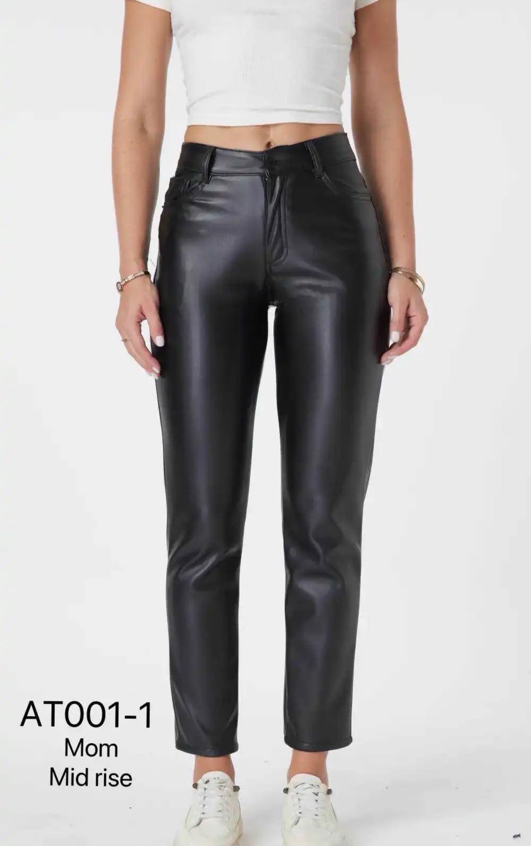 LEDEROPTIK MOM FIT JEANS - Schwarz