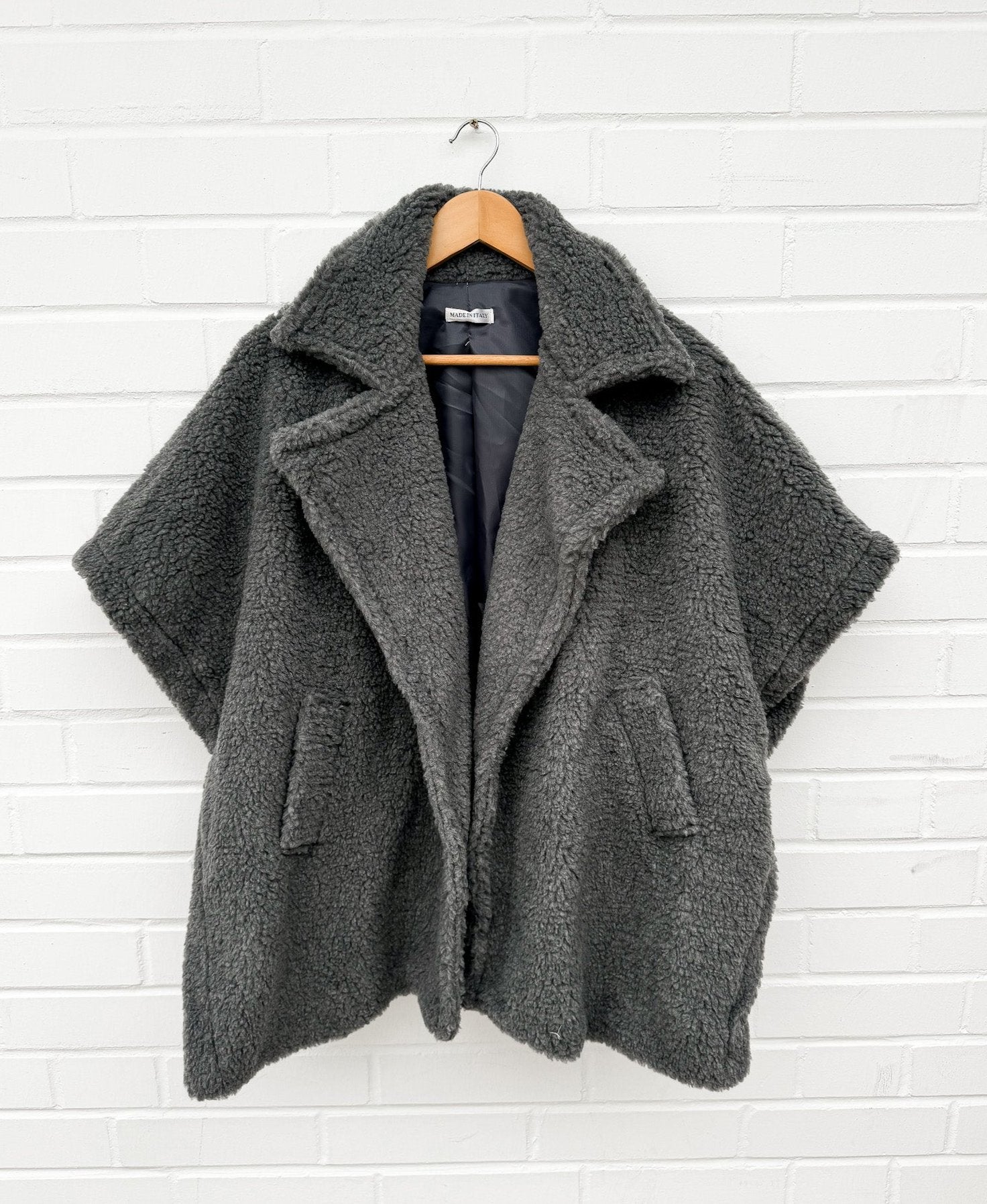 Oversize Teddy Weste mit Kragen und ohne Knöpfe.Größe: Einheitsgröße, passt bei Größe 36 bis 48/50Material: 100% Polyester